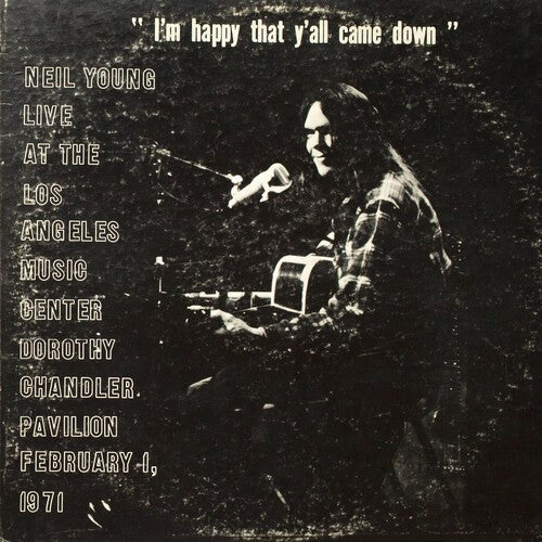 Live archive release. A live solo acoustic show recorded at Los Angeles Dorothy Chandler Pavilion on February 1 1971. A famous bootleg titled "I'm Happy That Y'all Came Down". A solo acoustic show recorded on February 1st, 1971 - with Neil on vocals, guitar, piano and harmonica. This was the last night of Neil's 1971 solo tour, that also featured the shows have been released as the much-loved albums Massey Hall and Young Shakespeare. The show was marked by the first time Neil played harmonica live. This album features 15 songs including "On The Way Home", "Heart of Gold", "The Needle And The Damage Done" and "A Man Needs A Maid".